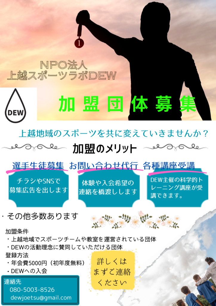 加盟団体募集 共に上越地域のスポーツを盛り上げませんか?運営 募集などをお手伝いします。